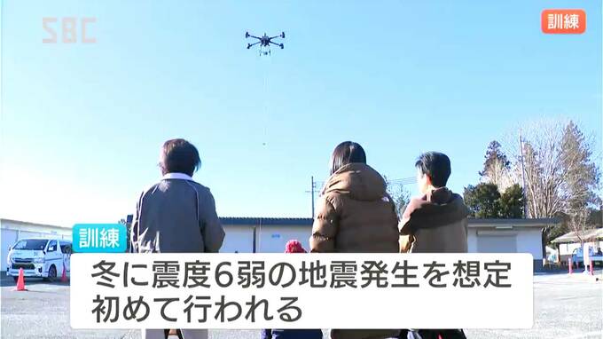 寒さの厳しい冬の災害を想定して、大型ドローンを使った物資輸送の訓練が松川町で行われました。