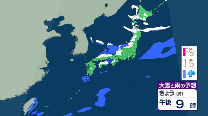 上空の強い寒気に加え、低気圧やシアーライン周辺の暖かく湿った空気が流れ込む影響で、各地で雪雲や雨雲が発達しやすくなる見込みです。