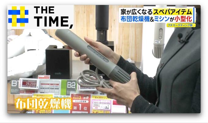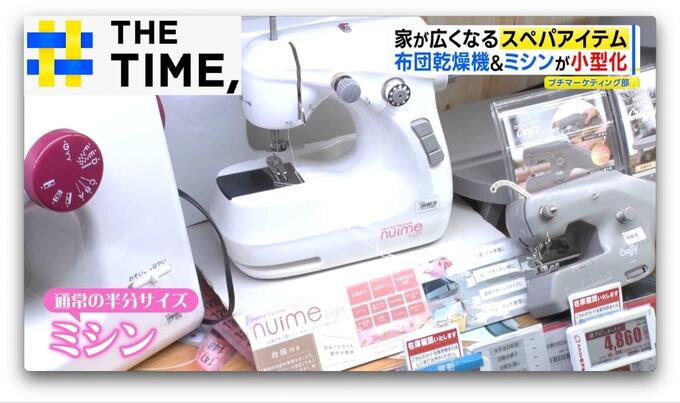 ヘアアイロンのような、“細い棒状”の布団乾燥機や、“通常の半分サイズ”のミシンなど、コンパクトな商品が様々並ぶ『ビックカメラ有楽町店』(東京・千代田区)。