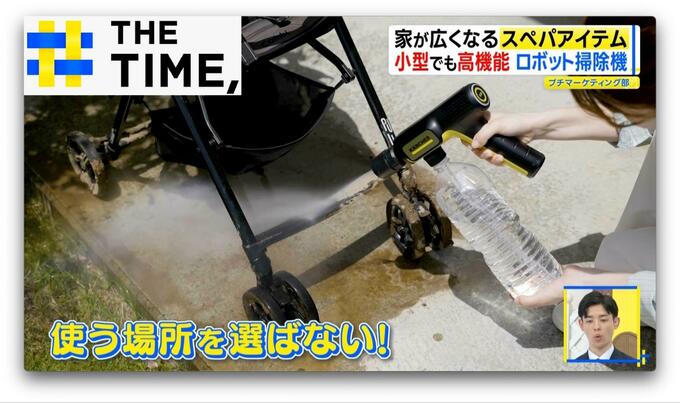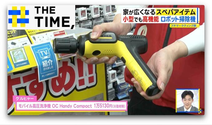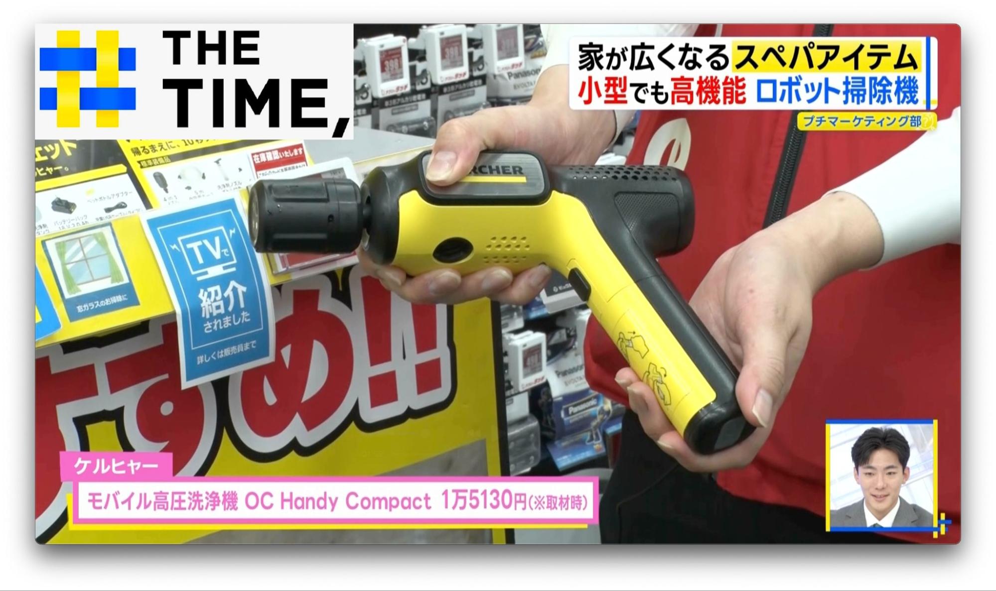 従来のものに比べかなりコンパクトになった「モバイル高圧洗浄機OC Handy Compact」(1万5130円※取材時)は、持ち手が折りたためるので片付ける場所も省スペースになります。