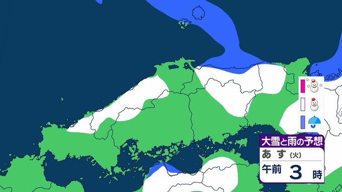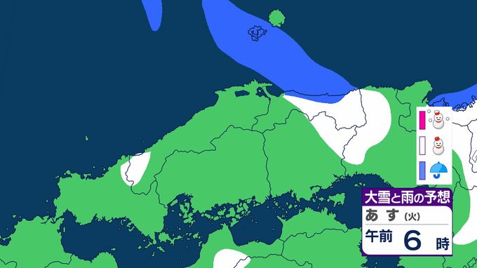 広島県は、寒気や湿った空気の影響で曇り、北部では明け方まで雷を伴い雪の降る所がある見込みです。昼前からは高気圧に覆われて次第に晴れるでしょう。