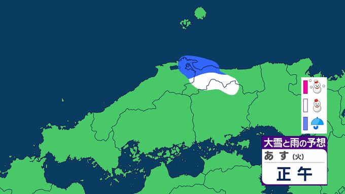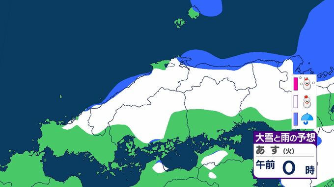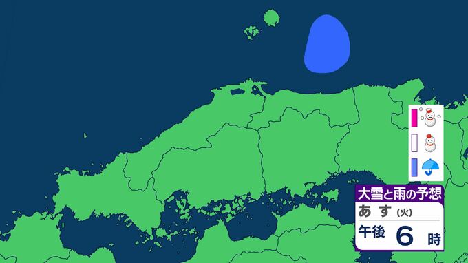 島根県は、寒気や湿った空気の影響で曇り、未明は雪や雨が降るでしょう。雷を伴う所がある見込みです。夕方からは高気圧に覆われておおむね晴れるでしょう。