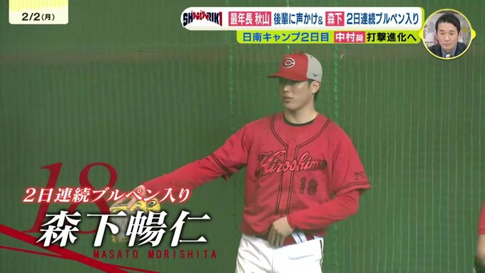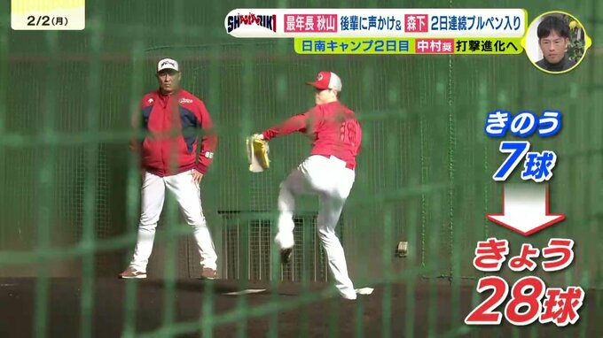 きょう2日の森下投手は、ストレートとカットボールを織りませながら28球。前日の7球から徐々に球数を増やしながら、10日の紅白戦に向けて調整を進めています。