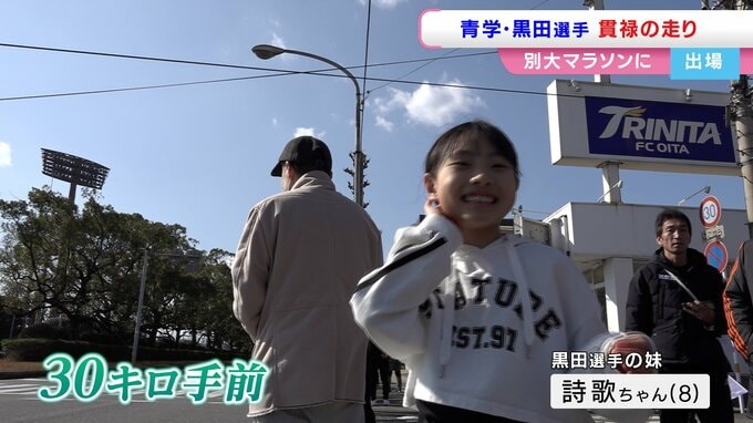 妹・詩歌ちゃんら黒田一家は30キロ手前地点で兄を待つ
