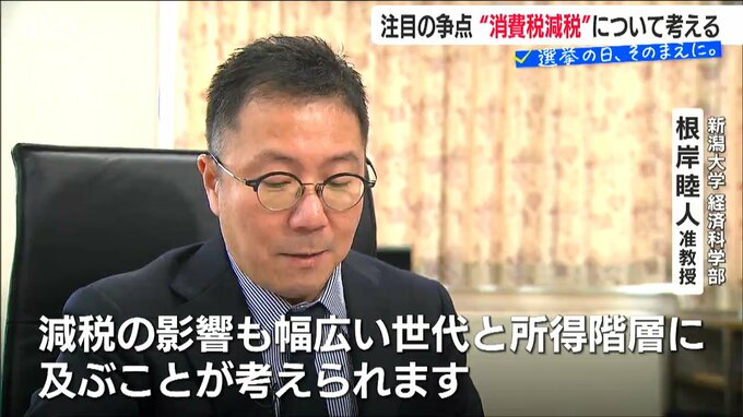 【新潟大学 経済科学部 根岸睦人 准教授】「幅広い世代や所得階層が共通して支出するものを対象としているので、減税の影響も幅広い世代と所得階層に及ぶことが考えられます」