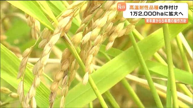 宮城県やJAなどは、2日に2026年度から5年間の稲作の方針について協議し、高温に耐えられる品種の作付面積を現在の2倍の1万2000haに増やすことなどを決めました。仙台市内で開かれた「宮城県米づくり推進本部」の会…