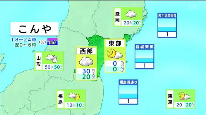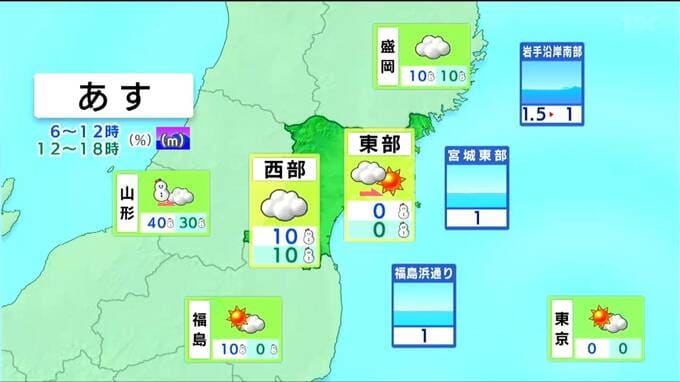 東部は雲がやや多いものの、午後を中心に晴れて、日中は西寄りの風がやや強く吹きそうです。西部は曇りで、明け方まで雪の降る所があるでしょう。