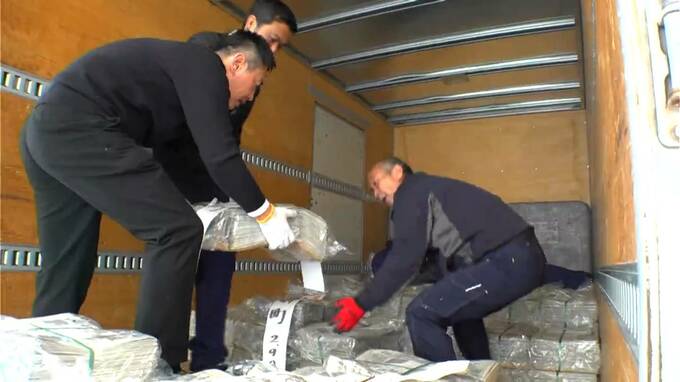 2日は、鹿児島市の谷山港近くにある運送会社で離島行きの選挙公報などが積み込まれました。