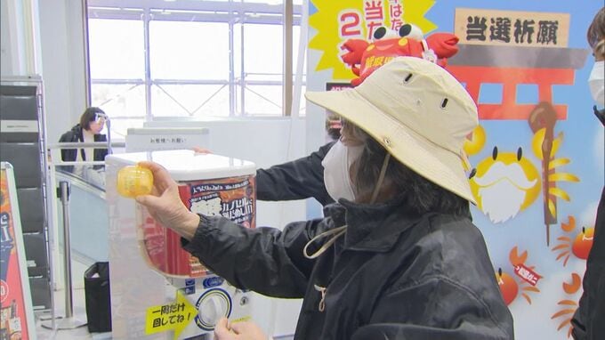 1回500円の“ガチャ”を回すと…1万円相当、「高級松葉がに」ゲットのチャンス 鳥取の空港で大盤振る舞いガチャ実施のワケとは? 今年は確率アップ、7000円相当の「ベニズワイガニ」も賞品に加わる 山陰放送 2026年2月2日(月) 17:30 国内 「スタート!」 次々運だめしに挑みますが、なかなかカニは当たりません。 しかし、ついに…。 スタッフ 「あっ!おめでとうございます!松葉がにが出ました!」