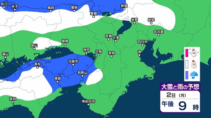 和歌山県は、高気圧に覆われて晴れますが、気圧の谷や湿った空気の影響で夕方から曇り、夜は雨や雪の降る所がある見込みです。雷を伴う所があるでしょう。