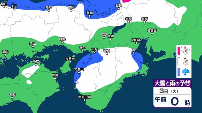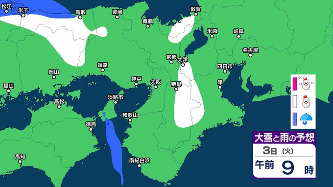 奈良県は、寒気や湿った空気の影響で曇り、明け方まで雪の降る所がある見込みです。夕方からは高気圧に覆われて晴れるでしょう。