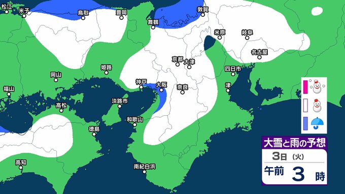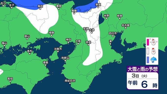 京都府は、寒気や湿った空気の影響で曇り、北部を中心に明け方まで雷を伴って雪が降るでしょう。昼過ぎからは高気圧に覆われて次第に晴れる見込みです。