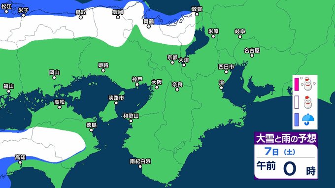 【関西の雪】近畿地方(大阪・京都・兵庫・滋賀・奈良・和歌山)の雪雨シミュレーションと16日間天気予報【気象庁/2月2日】 RSK山陽放送 2026年2月2日(月) 18:07 国内 天気 7日(土) 2日(月)~7日(土)近畿地方の雪雨シミュレーション・16日間天気予報