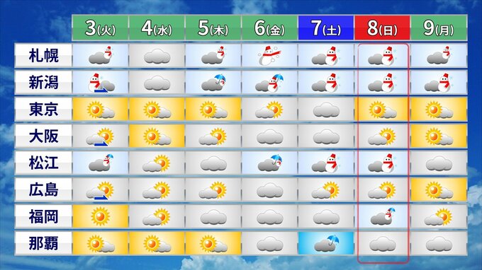 7日(土)~8日(日)は真冬の寒さ 投開票日は冷え込み強い