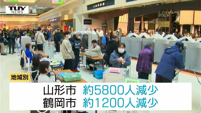 地域別では、山形市でおよそ5800人、鶴岡市でおよそ1200人少なくなっています。