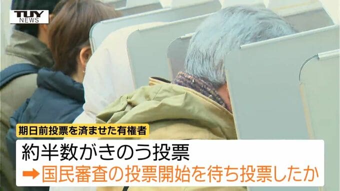 県選挙管理委員会では、これまでに期日前投票を済ませた有権者のうち、およそ半数がきのう(1日・日曜日)済ませていることから、国民審査の投票開始を待って