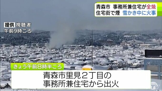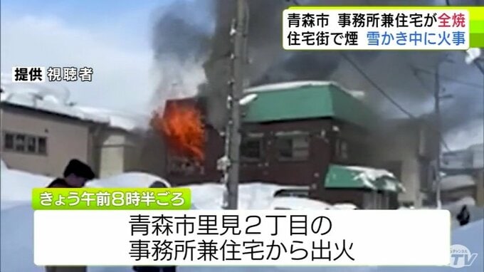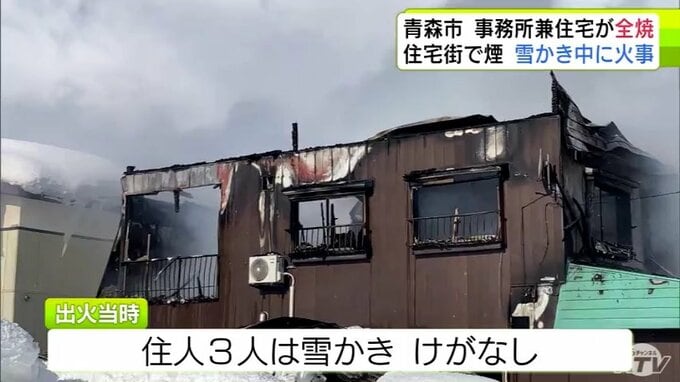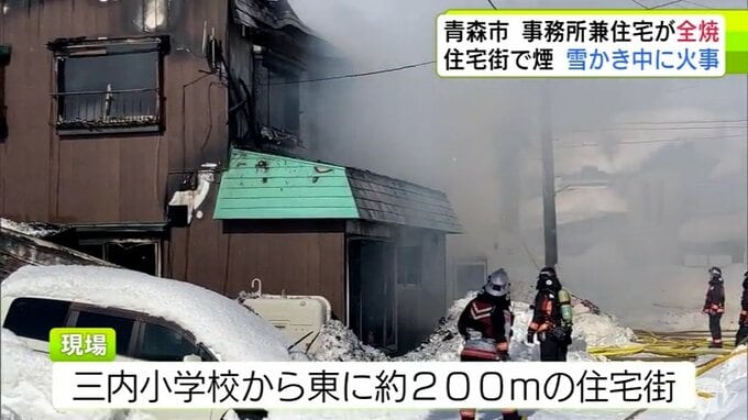 3. 【詳報】雪かき中に火事 三内小学校周辺の住宅街で事務所兼住宅1棟が全焼 青森県青森市