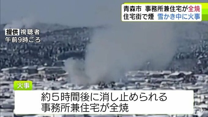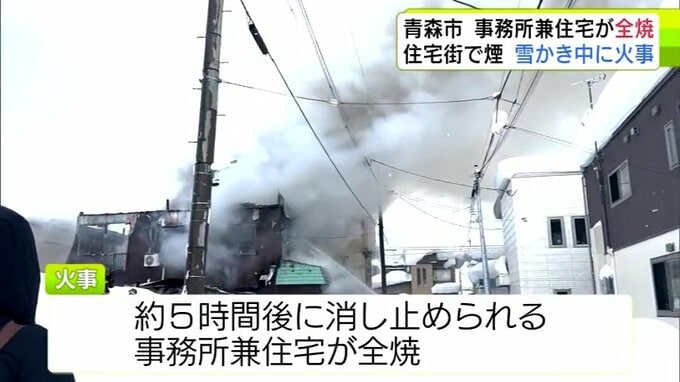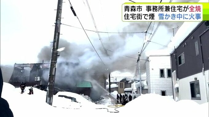【詳報】雪かき中に火事 三内小学校周辺の住宅街で事務所兼住宅1棟が全焼 青森県青森市