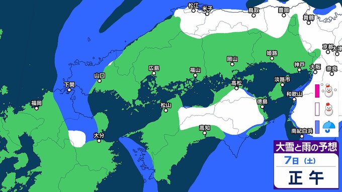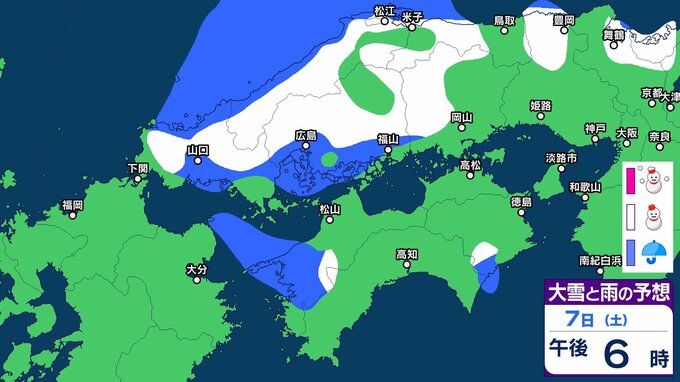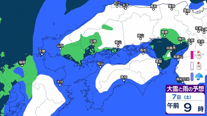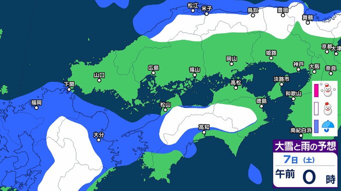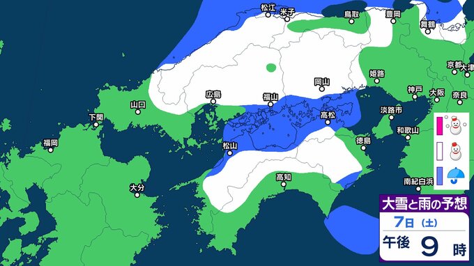 【雪の予想】中国・四国地方の今後の雪は? 広島・岡山・山口・鳥取・島根・香川・愛媛・高知・徳島 2月2日(月)~7日(土)までの雪雨シミュレーション【気象庁 /2日】 RSK山陽放送 2026年2月2日(月) 19:00 国内 天気 7日(土) 2日(月)~7日(土)雪雨シミュレーション画像 ▶2日(月)~7日(土)中国・四国地方の雪雨シミュレーション 予想にはブレ幅があるため、今後の気象情報をこまめに確認してください。