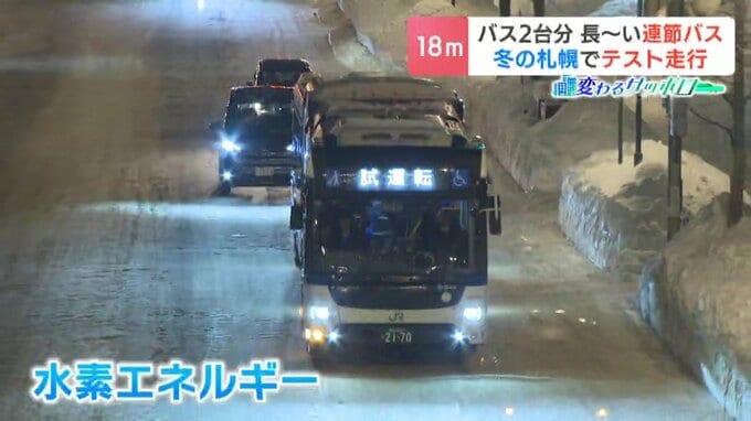 バスの動力には水素エネルギーが使われる「連節バス」。