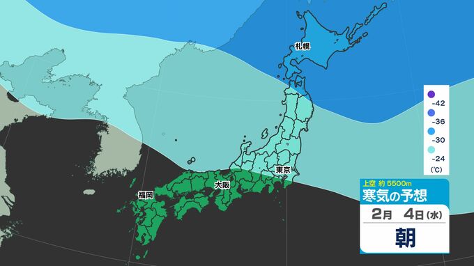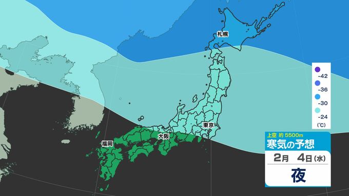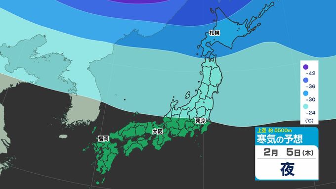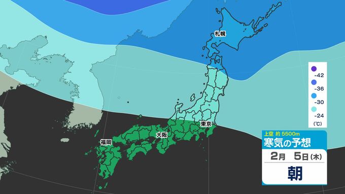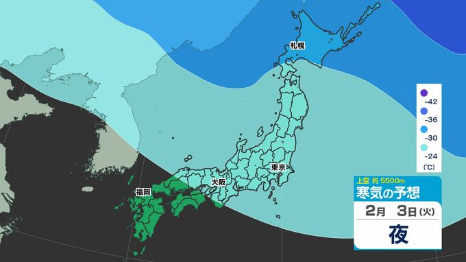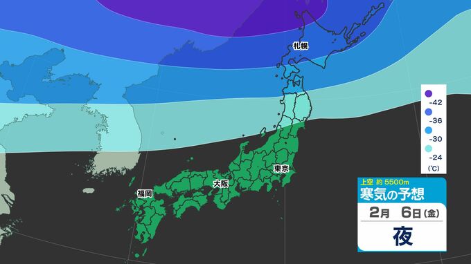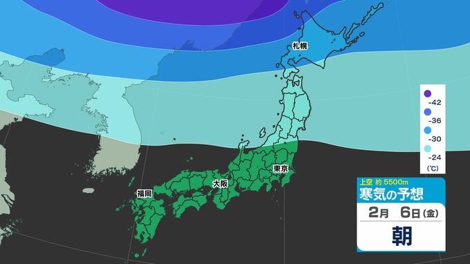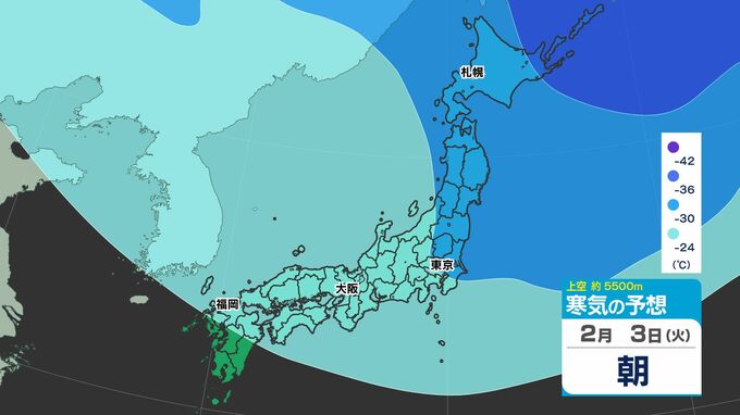 【東京首都圏 雪?】週末「強い寒気南下」東京・神奈川・埼玉・千葉で雪か【雪シミュレーション3日(火)~7日(土)】/ 関東各都市の週間予報】東京・神奈川・埼玉・千葉・群馬・茨城・栃木・山梨・長野 南日本放送 2026年2月2日(月) 19:00 国内 天気 寒気シミュレーション3日(火)~9日(月) 上空約5500mには「大雪」の目安の「氷点下36℃以下」の寒気が、関東地方に8日(日)ごろ南下してくる見込みです。 この記事をはじめから → 【東京首都圏 次の週末は雪?】雪シミュレーション