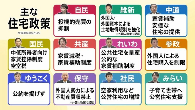 今回の衆院選での、各党の住宅政策は以下のようになっています。