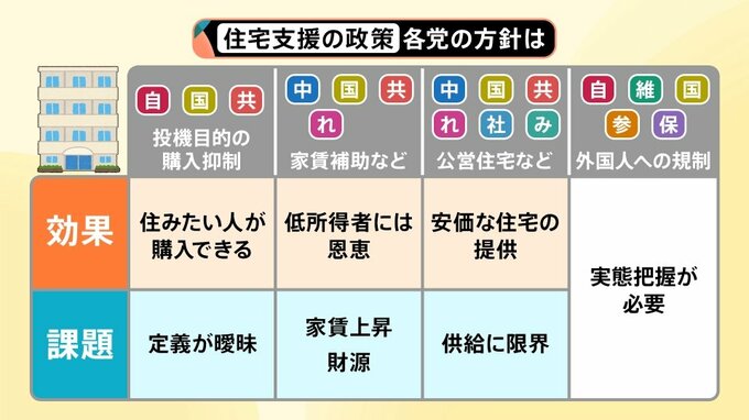 【住宅支援の政策 各党の方針は?】