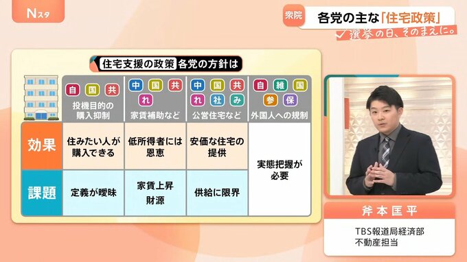 「外国人への規制」では、不動産の取得規制を掲げている政党が多いのですが、実態が不透明な部分も多くあります。“住宅購入が必要な外国人”と“外国に住んでいる外国人”の区分を丁寧にする必要があります。
