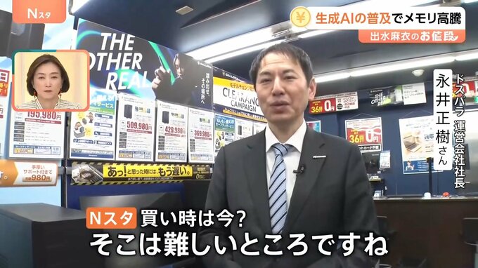 「スマートフォンであるとか、ゲーム機であるとか、メモリが使われているものは大体影響を受けると思います。(Q.買い時は今?)そこは難しいところですね。本当に必要なタイミングで検討を進めるしかないのかなという風に思っています」