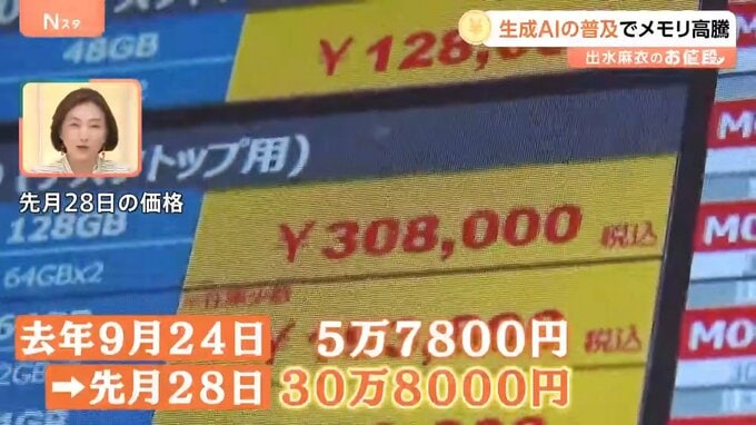 パソコンをスムーズに動かすために欠かせないメモリ。2025年9月の末ごろから急に価格が上がり始めたといいます。