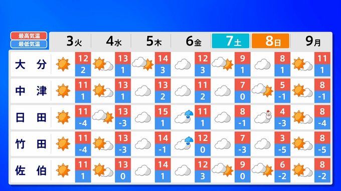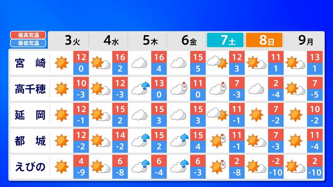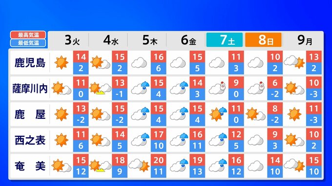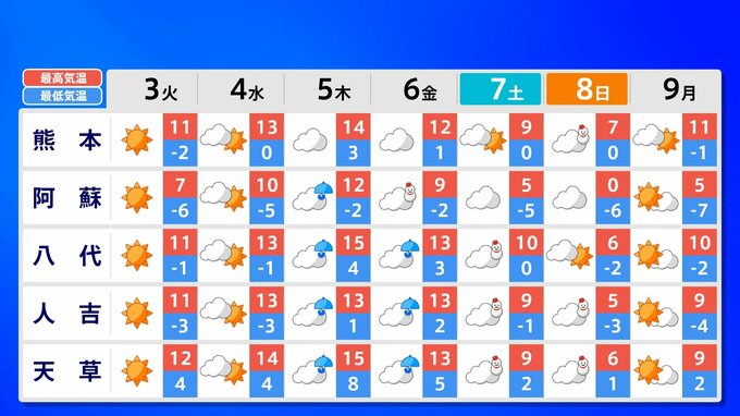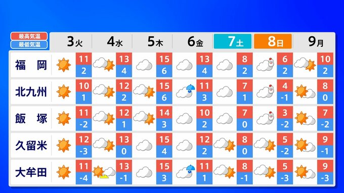 九州地方 各都市の週間予報(3日(火)~ 9日(月))
