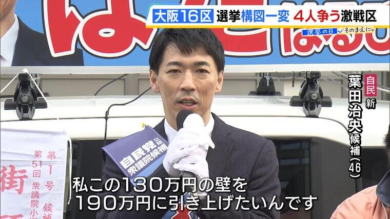 投資会社社長の葉田候補は、扶養に入っている配偶者などに社会保険料の負担が生じる、いわゆる「130万円の壁」の引き上げを訴えています。