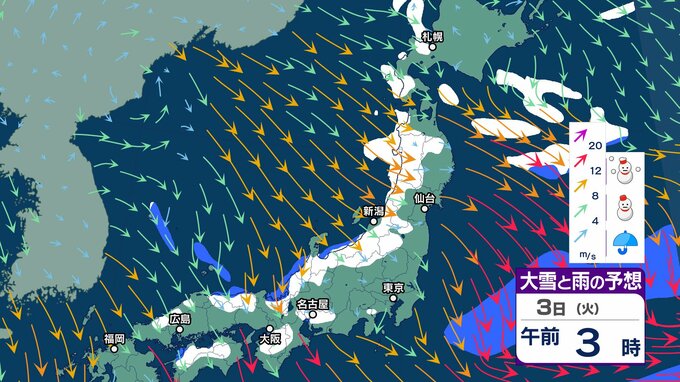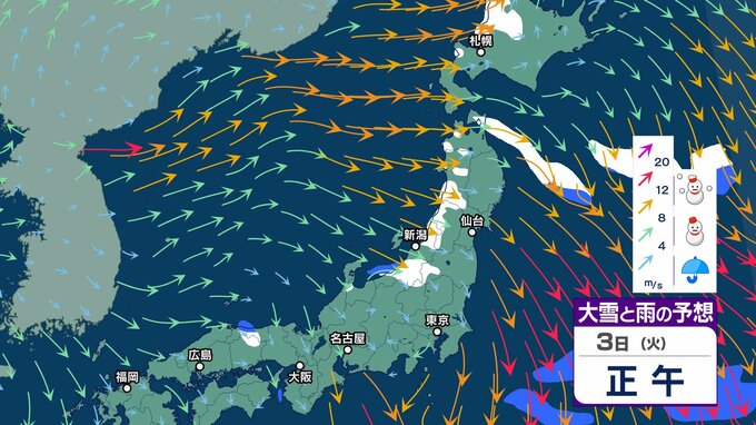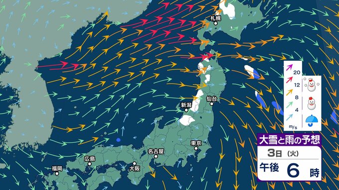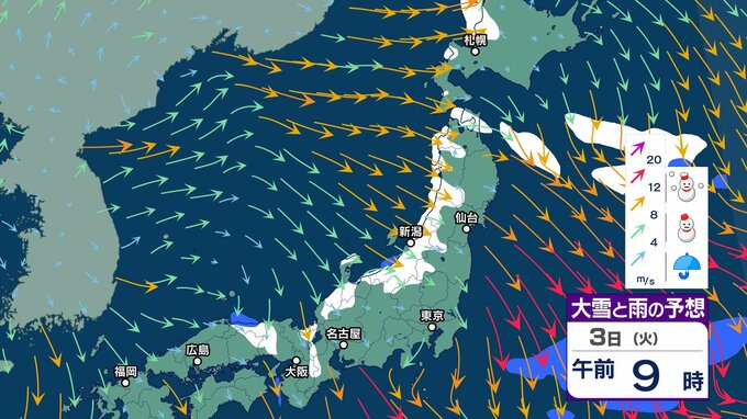 【気象情報】3日(火)上空にマイナス39℃の寒気も4日(水)5日(木)は一転…暖気流入で「なだれ」「竜巻」など激しい突風に注意【雪と雨のシミュレーション】 チューリップテレビ 2026年2月3日(火) 08:15 国内 天気 3日(火)雨と雪のシミュレーション