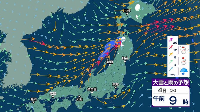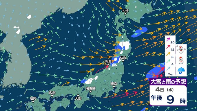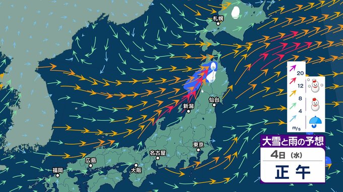 【気象情報】3日(火)上空にマイナス39℃の寒気も4日(水)5日(木)は一転…暖気流入で「なだれ」「竜巻」など激しい突風に注意【雪と雨のシミュレーション】 チューリップテレビ 2026年2月3日(火) 08:15 国内 天気 4日(水)雨と雪のシミュレーション