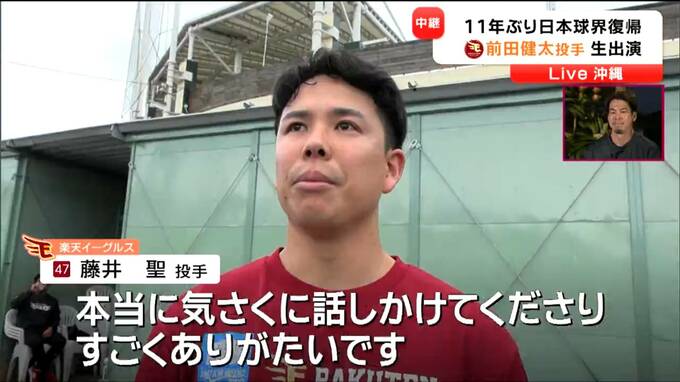 楽天イーグルス 藤井聖投手:「一昨年前に交流させていただいたことがあったので、本当に気さくに喋りかけてくださるんで、すごくありがたいです。本当に雲の上の存在と思った人だったんで、すごく優しい方なんだなとすごくびっくりしました」