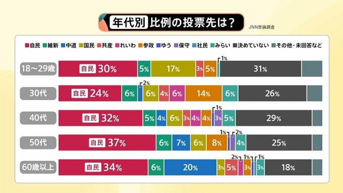 「投票先を決めていない」が各世代で2~3割というのは、この短期間の中で、各党の政策を細かく読んで…と、まだ少し時間がある中、なかなか決められない人が多いのかなと思います。