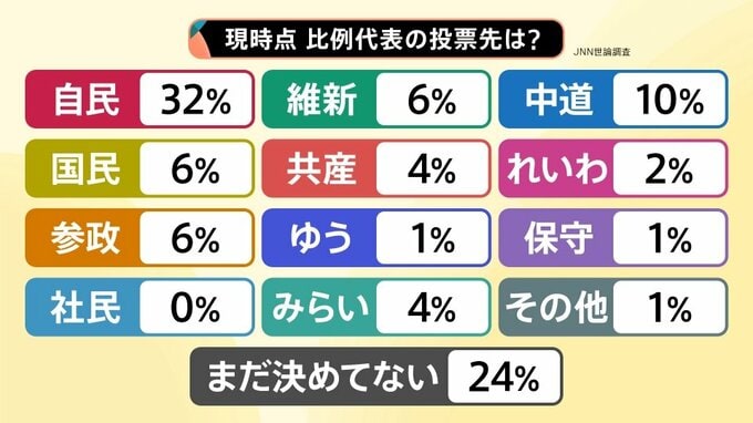 JNN世論調査では、比例代表の投票先についても聞いています。