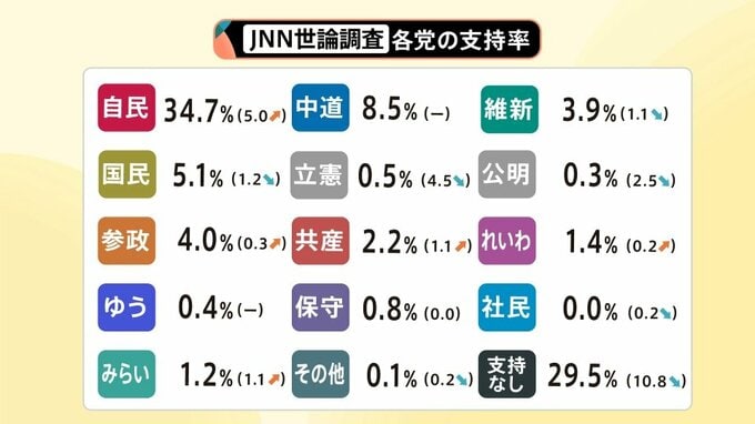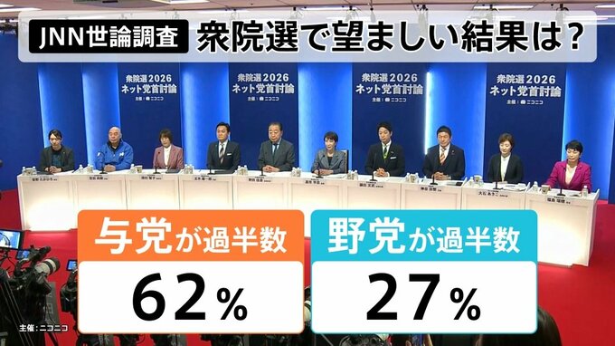 JNN世論調査では、衆院選で望ましい結果、各党の支持率などについても聞いています。