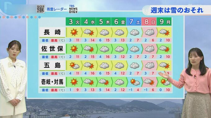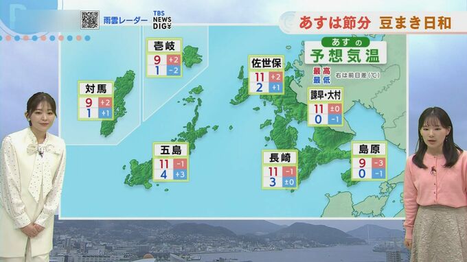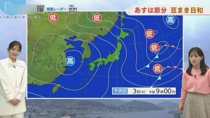 最低気温は0度から4度、最高気温は9度から11度と冷え込みが強まります。「豆まきに行かれる方は、しっかり防寒対策しておいてください」