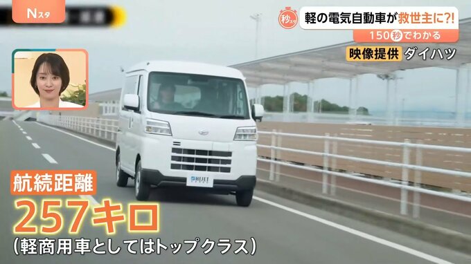 初めての量産車にあえて選んだのが、運送や配送など業務目的で使われる“商用車”です。航続距離は軽商用車としてはトップクラスの257キロ。