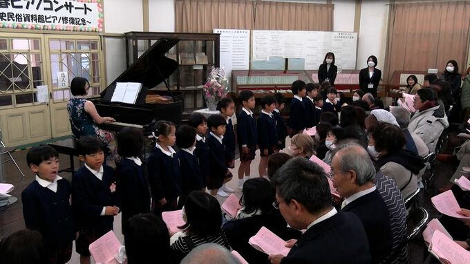 倉敷市歴史民俗資料館で開かれたコンサートは、ピアノが、去年、修復されたことを記念したものです。上皇さまのご生誕記念として92年前に24台のみが製作された希少なピアノは、かつて、倉敷市立幼稚園で使用されていたもので、コンサートは同窓会が主催しました。
