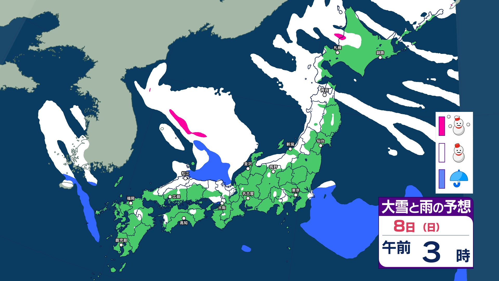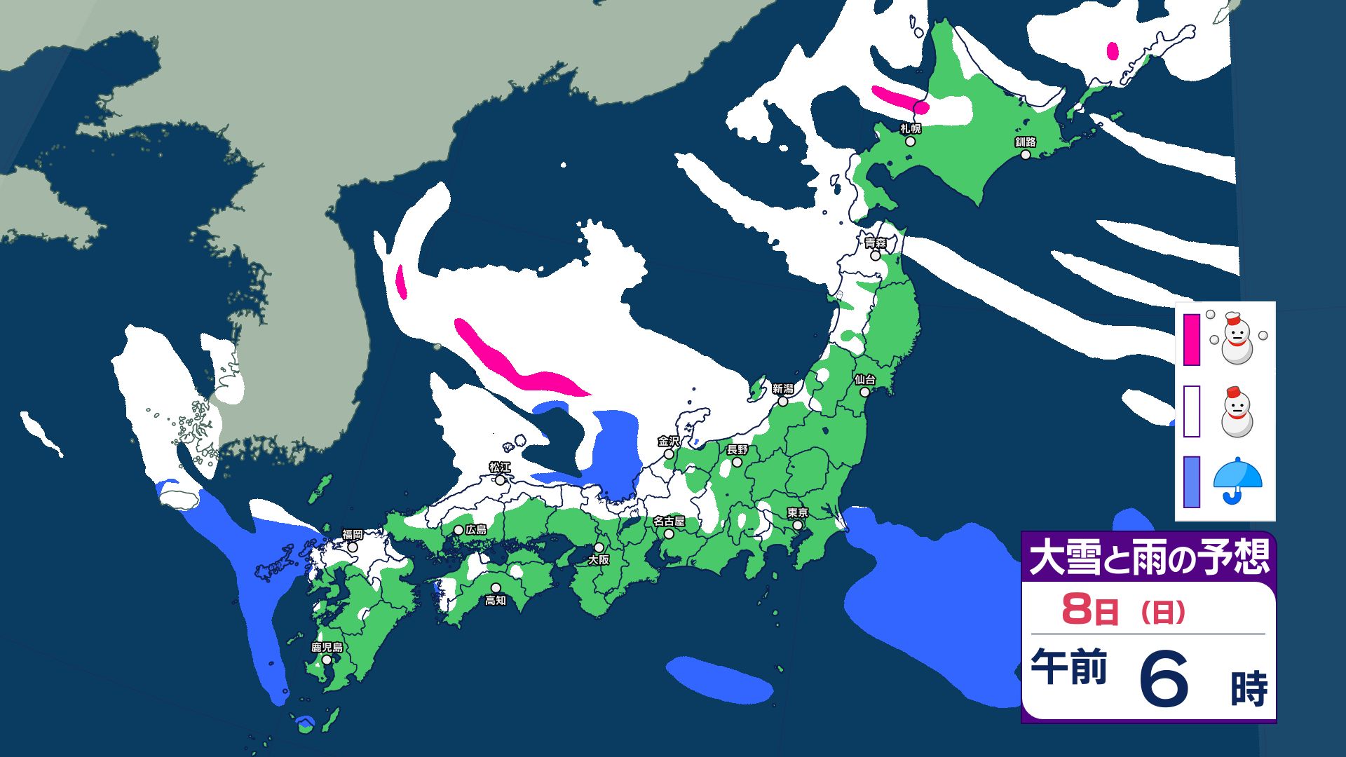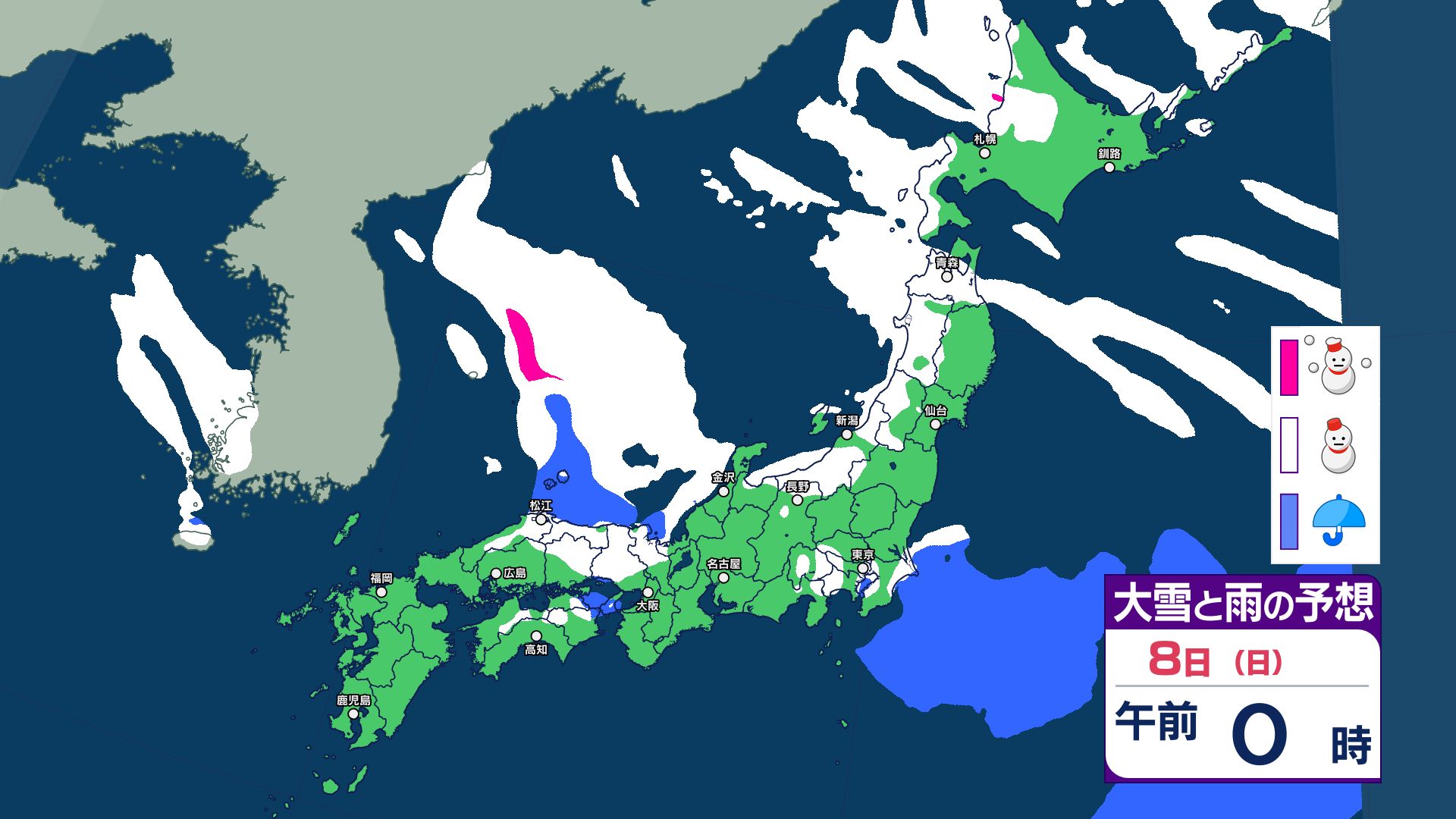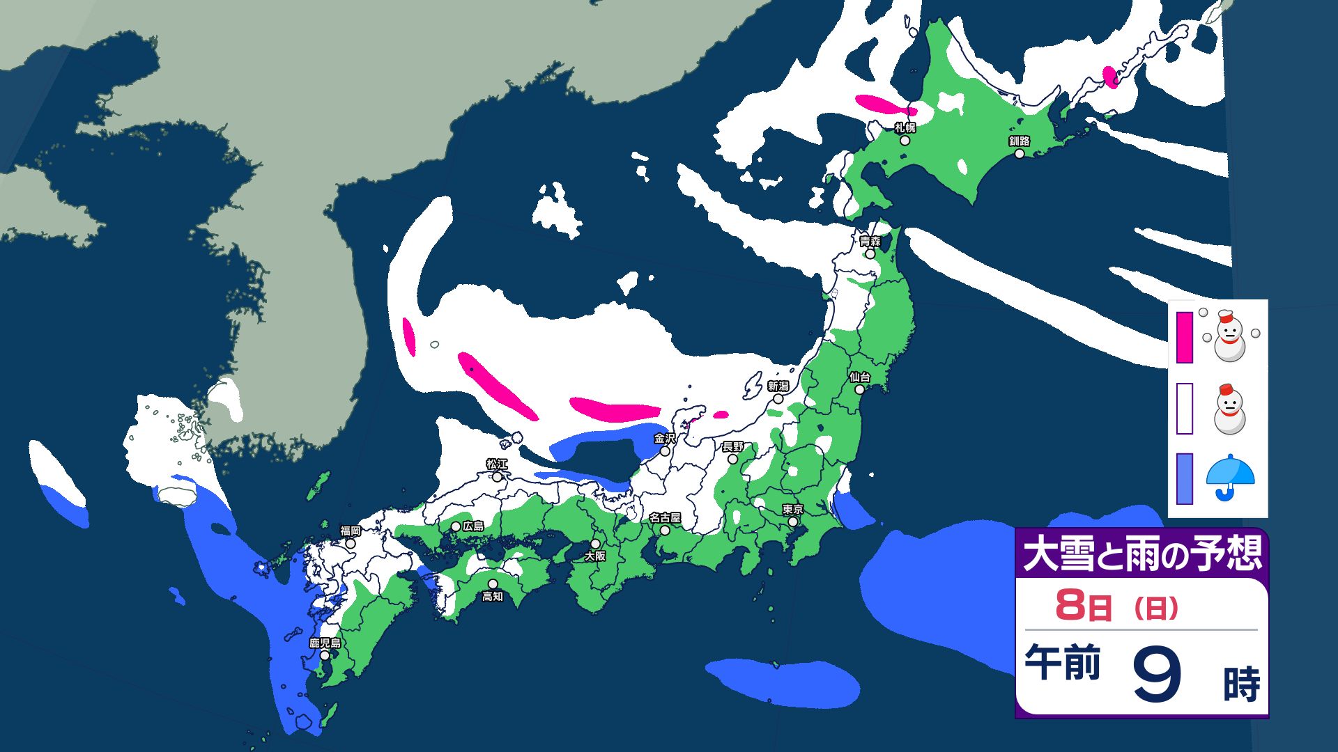 【大雪情報】8日(日)は再び強い寒気…日本海側中心に大雪の可能性 東日本~西日本…