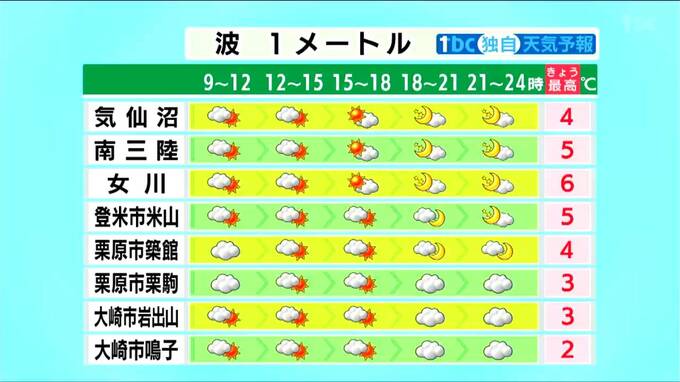 ■登米市米山:5℃ ■栗原市築館:4℃ ■栗原市栗駒:3℃