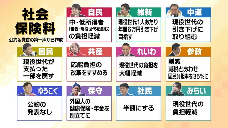 【社会保険料に関する主張】※公約&党首の第一声から作成