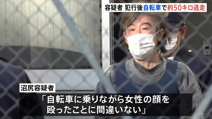 沼尻容疑者は「自転車に乗りながら女性の顔を殴ったことに間違いない」と容疑を認めているということです。