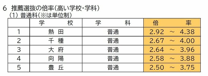 3. 【愛知県公立高校入試 2026】出願状況 推薦・特色選抜などの倍率 普通科では「熱田」2.92~4.38倍 「千種」2.67~4.00倍 「大府」2.64~3.96倍 志願者数【一覧】