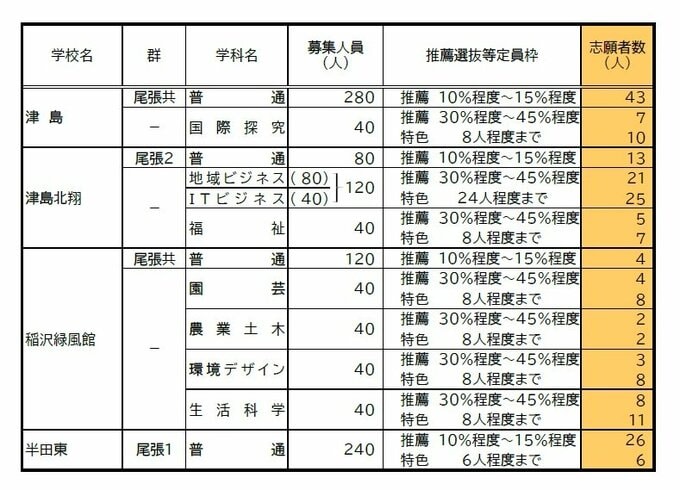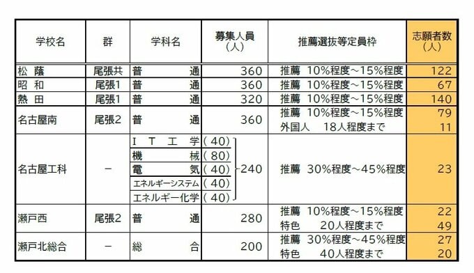 3. 【愛知県公立高校入試 2026】出願状況 推薦・特色選抜などの倍率 普通科では「熱田」2.92~4.38倍 「千種」2.67~4.00倍 「大府」2.64~3.96倍 志願者数【一覧】