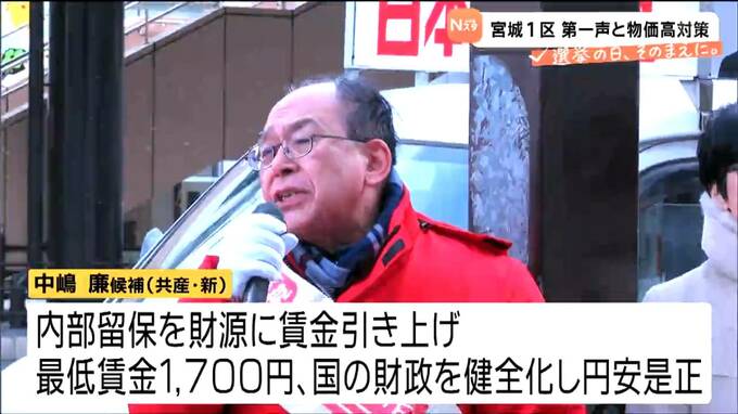共産党の新人・中嶋廉さんは、大企業の内部留保を財源に賃金を引き上げ、最低賃金も1700円を目指すと訴えています。また、国の財政を健全化し円安を是正するとしています。