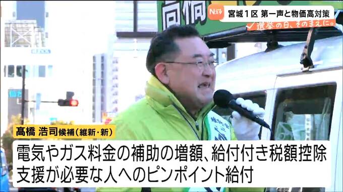 日本維新の会の新人・髙橋浩司さんは、電気やガス料金の補助の増額に加え、給付付き税額控除や支援が必要な人へのピンポイント給付を訴えています。