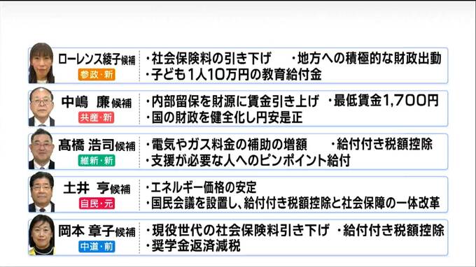 あらためて各候補者が考える消費税以外の物価高対策をまとめました。